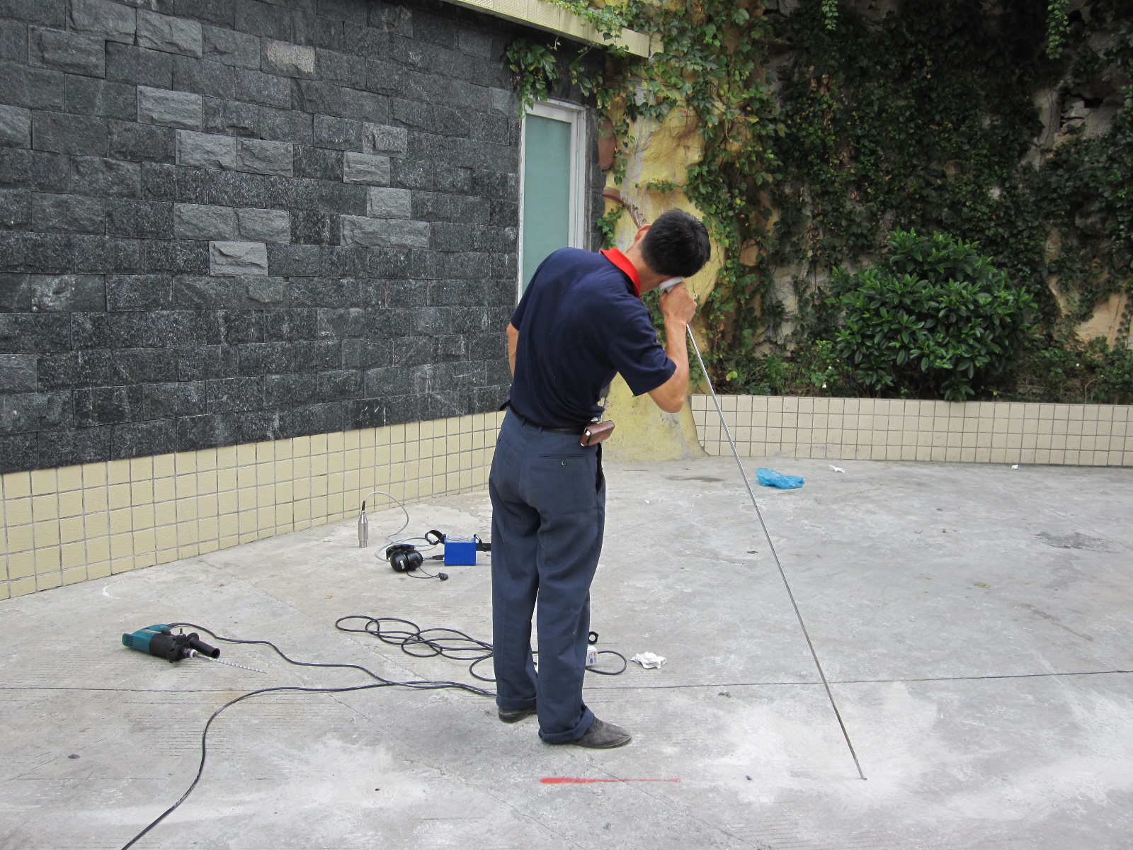 廣州晨悅商務(wù)酒店臨近停車場通道的地下室墻壁長期有凈水滲漏下來,此現(xiàn)象極大程度為地下水管漏水所引起,酒店工程管理部門聯(lián)系到我公司為其地段進行地下管道漏水檢測。因需檢測地段車流往返頻繁,噪音很大,我公司技術(shù)人員凌晨3點進入場地進行聲波探測,很快就定位出漏點,酒店相關(guān)部門立即派人開挖修復管道,當天就解決漏水問題。
